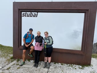 (links) Daniel, mein älterer Sohn, meine Schwiegertochter Denise (rechts) und ich (Mitte) auf Wanderschaft.