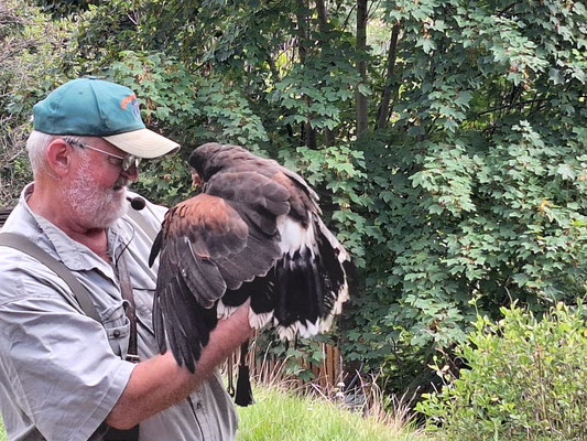 Flugvorführungen finden statt. Beobachten Sie Matthias Prem bei seiner Arbeit mit diesen besonderen Geschöpfen.